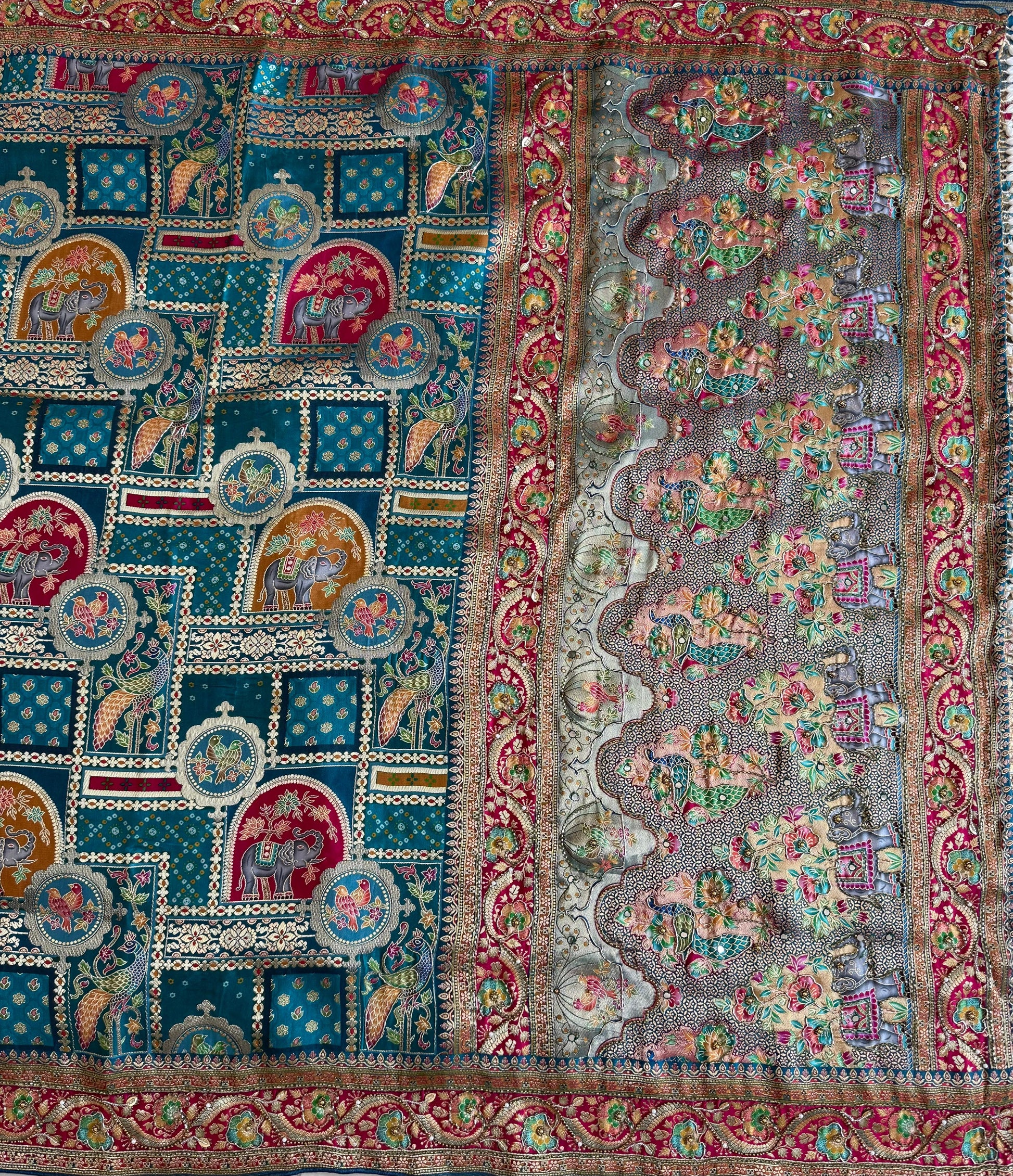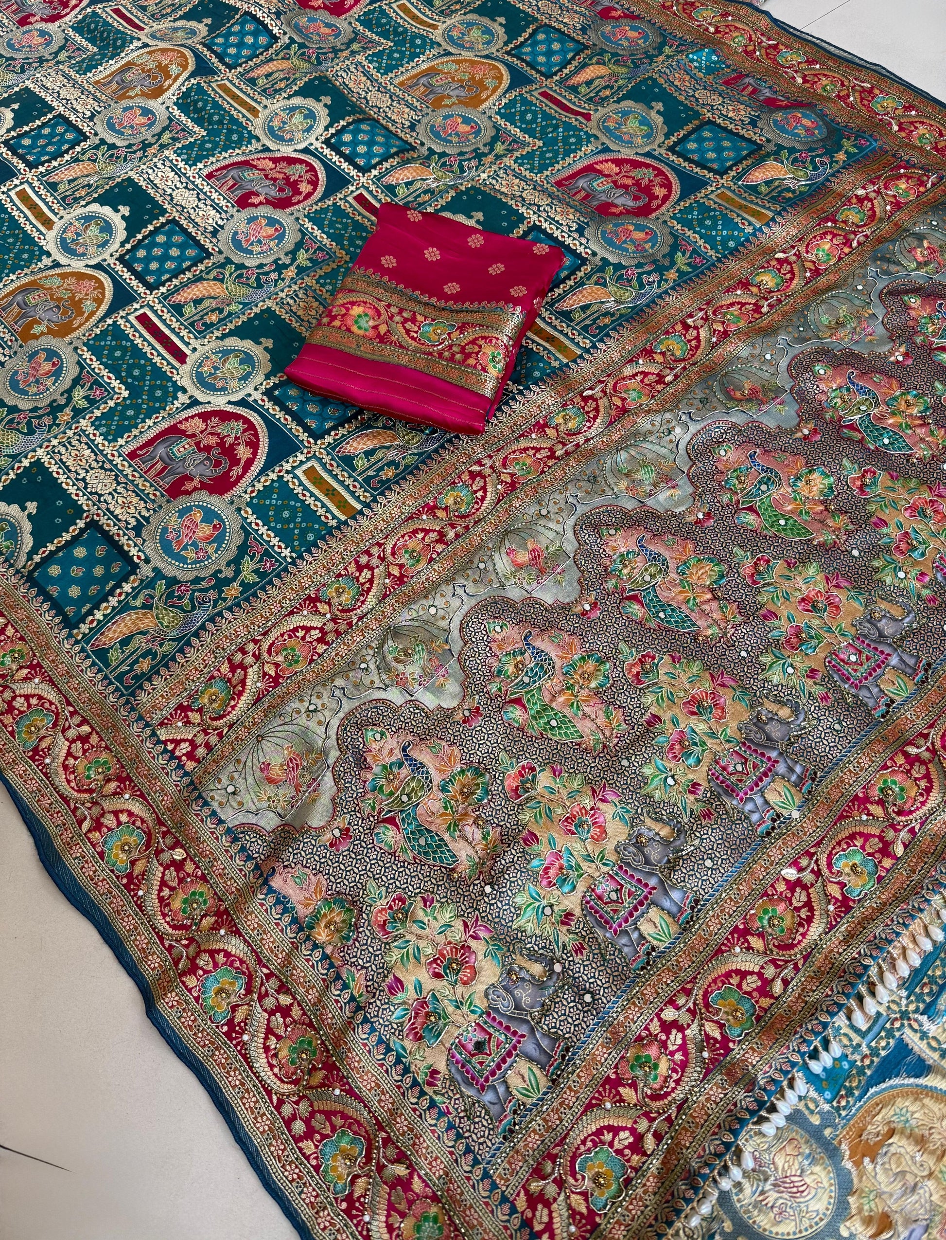 *Heavy Pashmina Silk Saree With Zari Weaving Design And Elephant And Birds Design All over the Body*