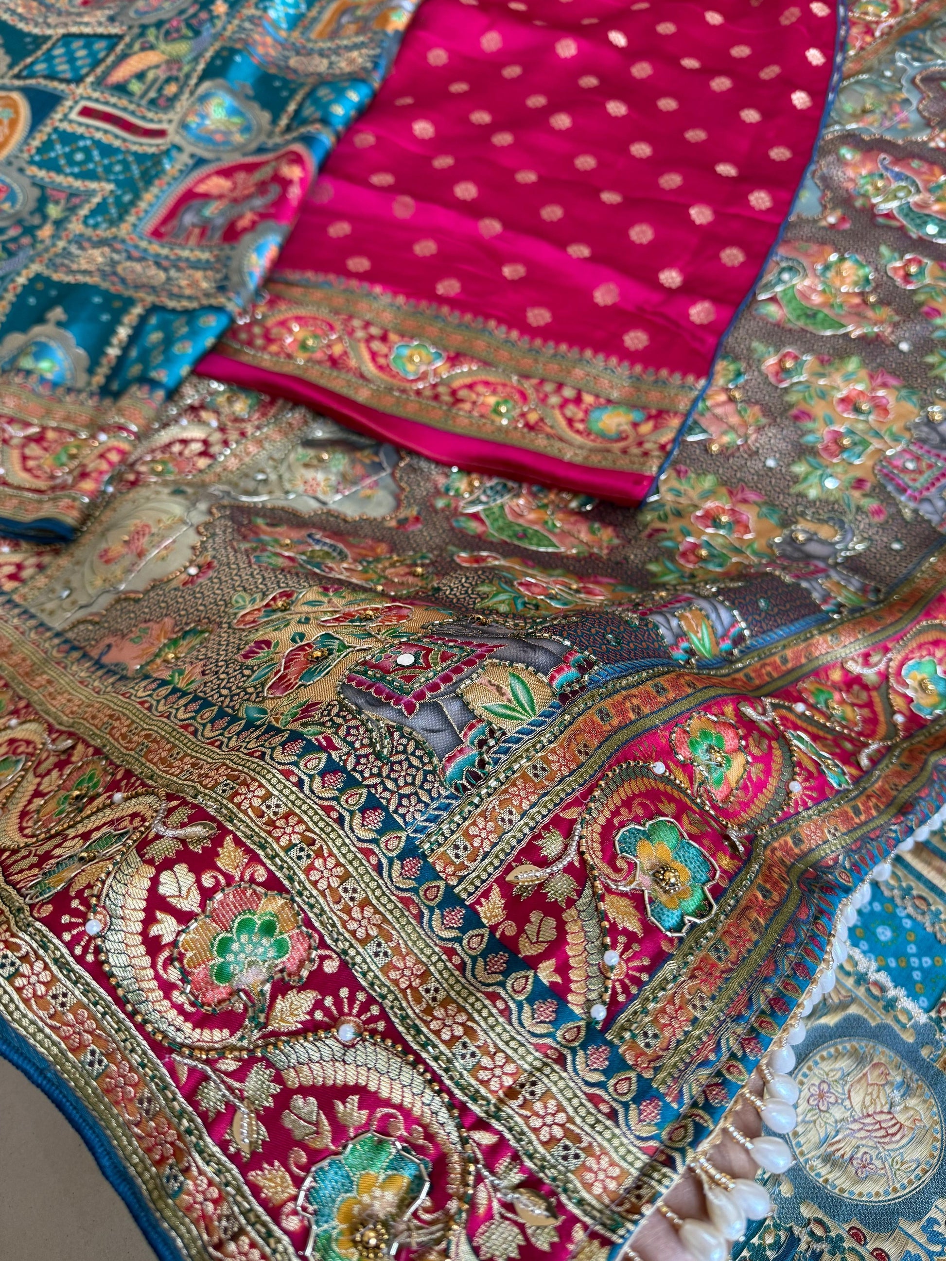 *Blouse:- Contrast Blouse with Handwork Sleeves*