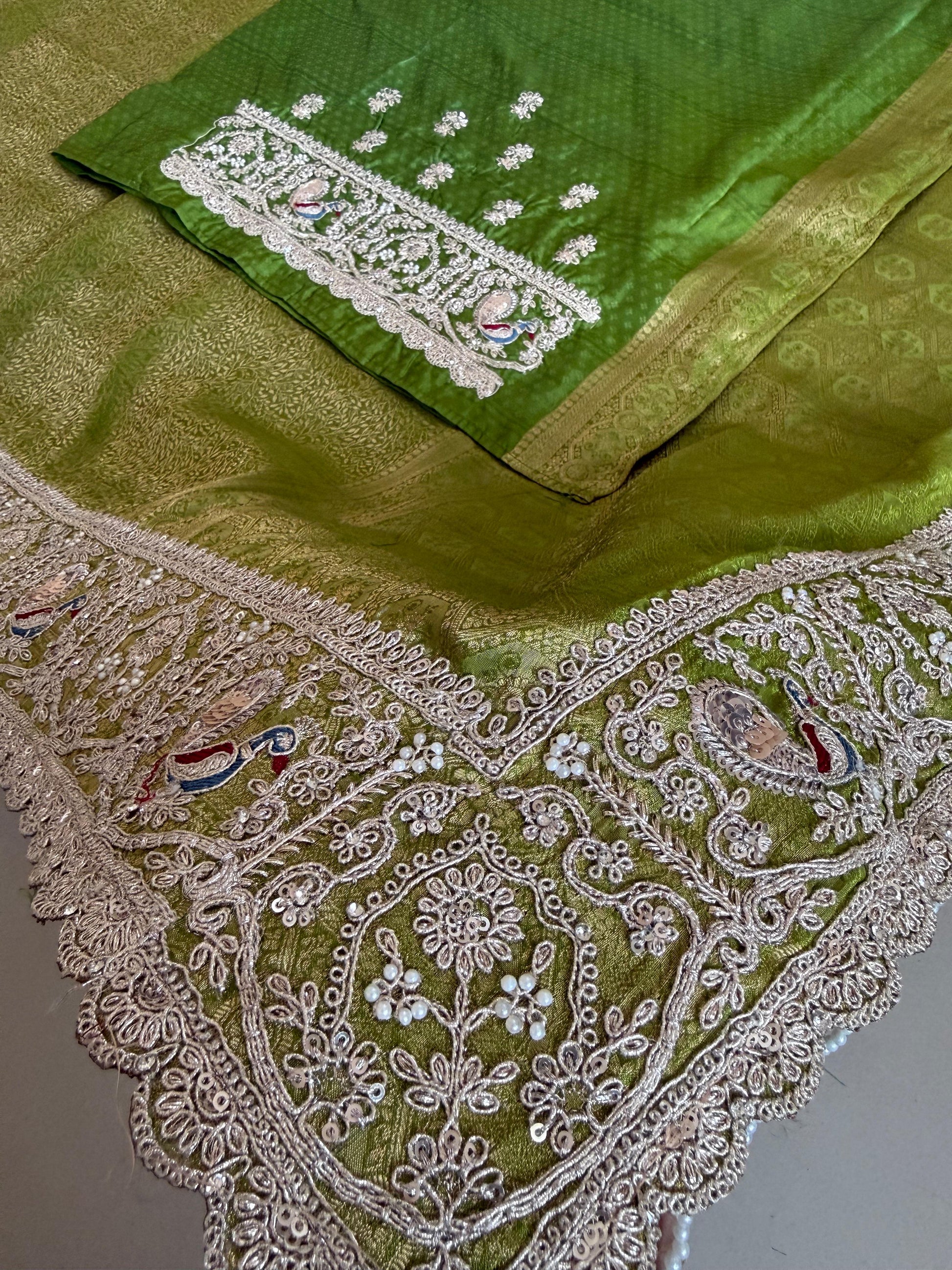 *Pure Soft Tissue Silk Saree And Moti Taseels with Self Weaved Body And Heavy Coding And Sequnce Work With Peacock Design*