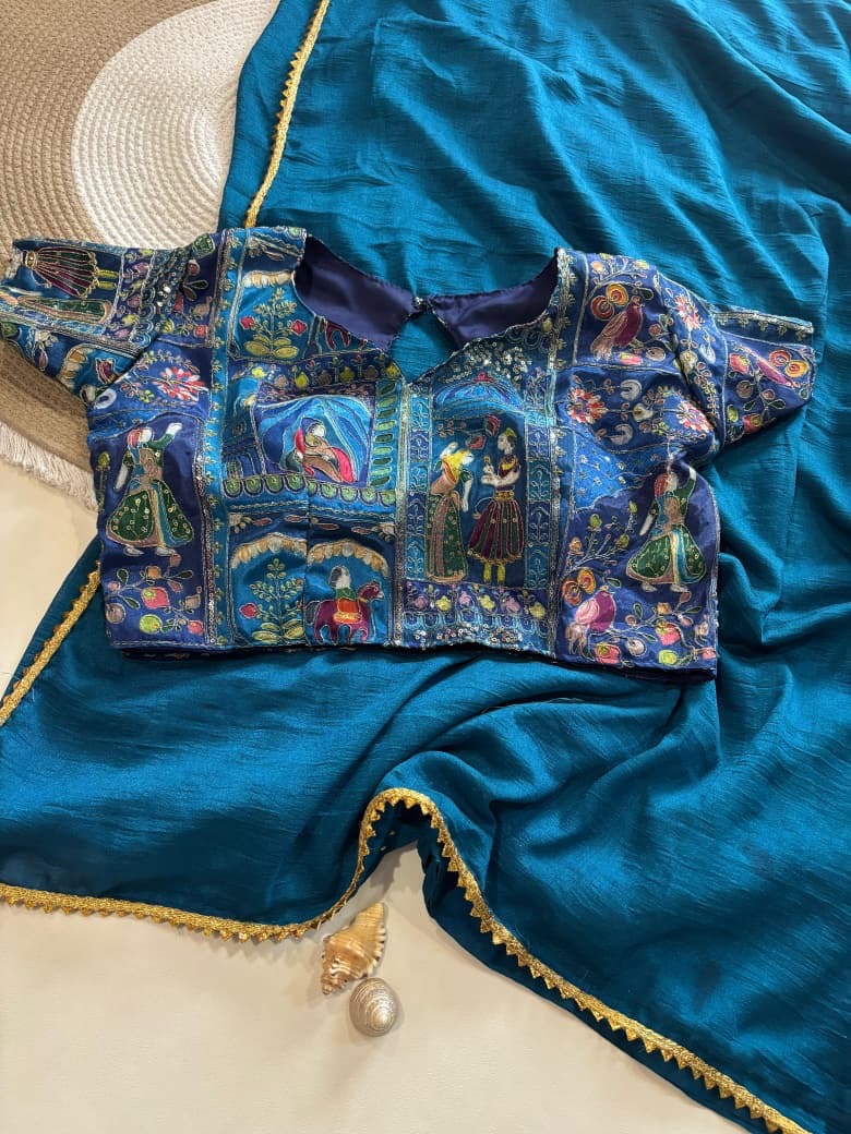 Blouse :- RajaRani Position Print With Dori Sequence Embroidery Work l